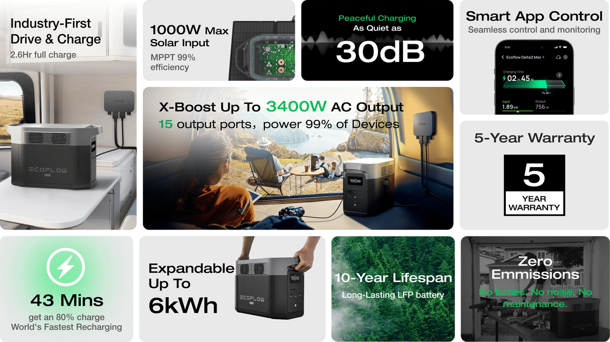 Designed for performance and durability, the DELTA 2 Max comes with a comprehensive 5-year warranty, giving you peace of mind and long-term support.